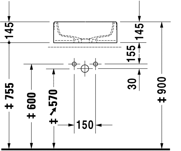 DuraStyle 嵌入式脸盆 0372600000台上式脸盆, 无溢水口, 无龙头安装台, 600 ...